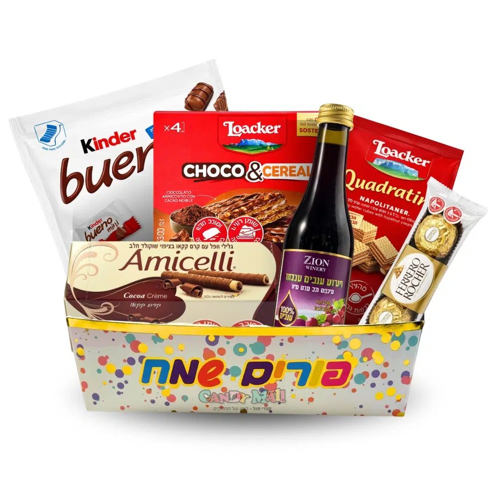 מחפשים משלוח מנות מתוק ושמח שמשלב שוקולדים אהובים עם טאץ’ חגיגי אמיתי? ב-CandyMall הכנו עבורכם מארז קומפקטי, אלגנטי ומרשים – מושלם כמתנה מתוקה לכל אירוע.