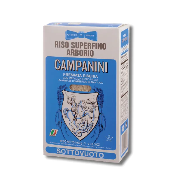 אורז ארבוריו איטלקי מקורי מהמותג הנחשב Campanini. אורז סופרפינו איכותי במיוחד עם גרגרים עגולים וקצרים, אידיאלי להכנת ריזוטו קרמי ומושלם, ממולאים טעימים, ואפילו קינוחי אורז עשירים.מגיע ישירות ממחוז מנטובה שבצפון איטליה, אזור הנחשב למובילים בייצור אורז איכותי. המרקם המיוחד של הגרגרים העגולים סופג נוזלים בצורה מדויקת ומשחרר עמילן בהדרגה, מה שיוצר את הקרמיות המושלמת של ריזוטו אותנטי.