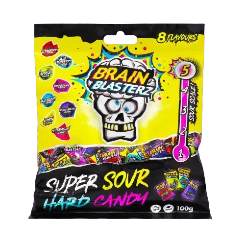 Brain Blasters סוכריות קשות חמוצות במילוי אבקה חמוצה בטעם פירות 100g