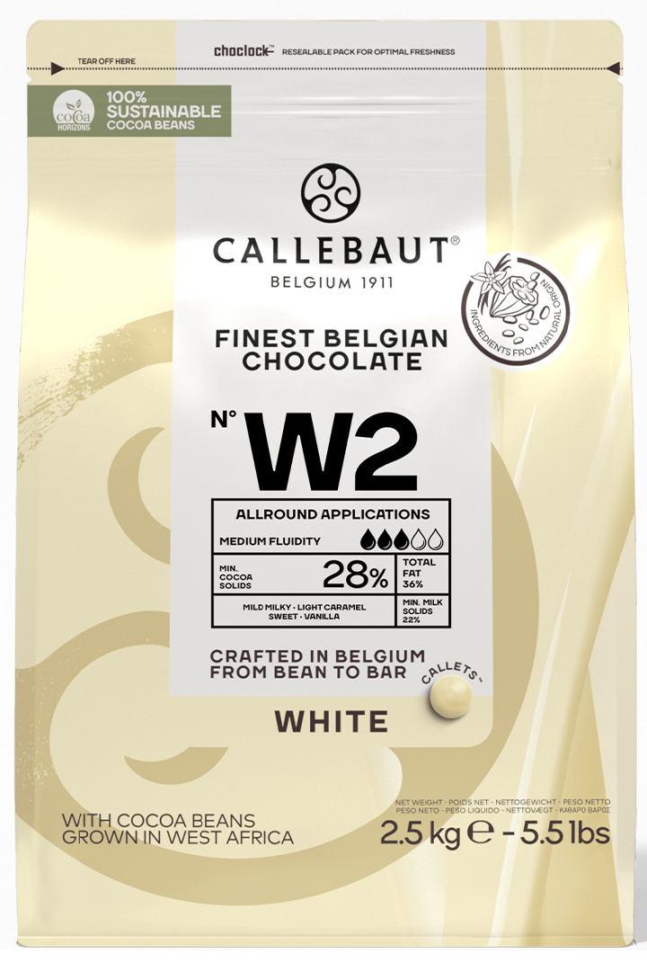 קליבוט שוקולד בלגי לבן לאפיה והמסה 2.5 ק"ג הוא שוקולד בלגי לבן של Callebaut, באריזת 2.5 ק"ג. זהו מוצר שמופיע בקטגוריות האפייה וההמסה של המותג בפורמט גדול.