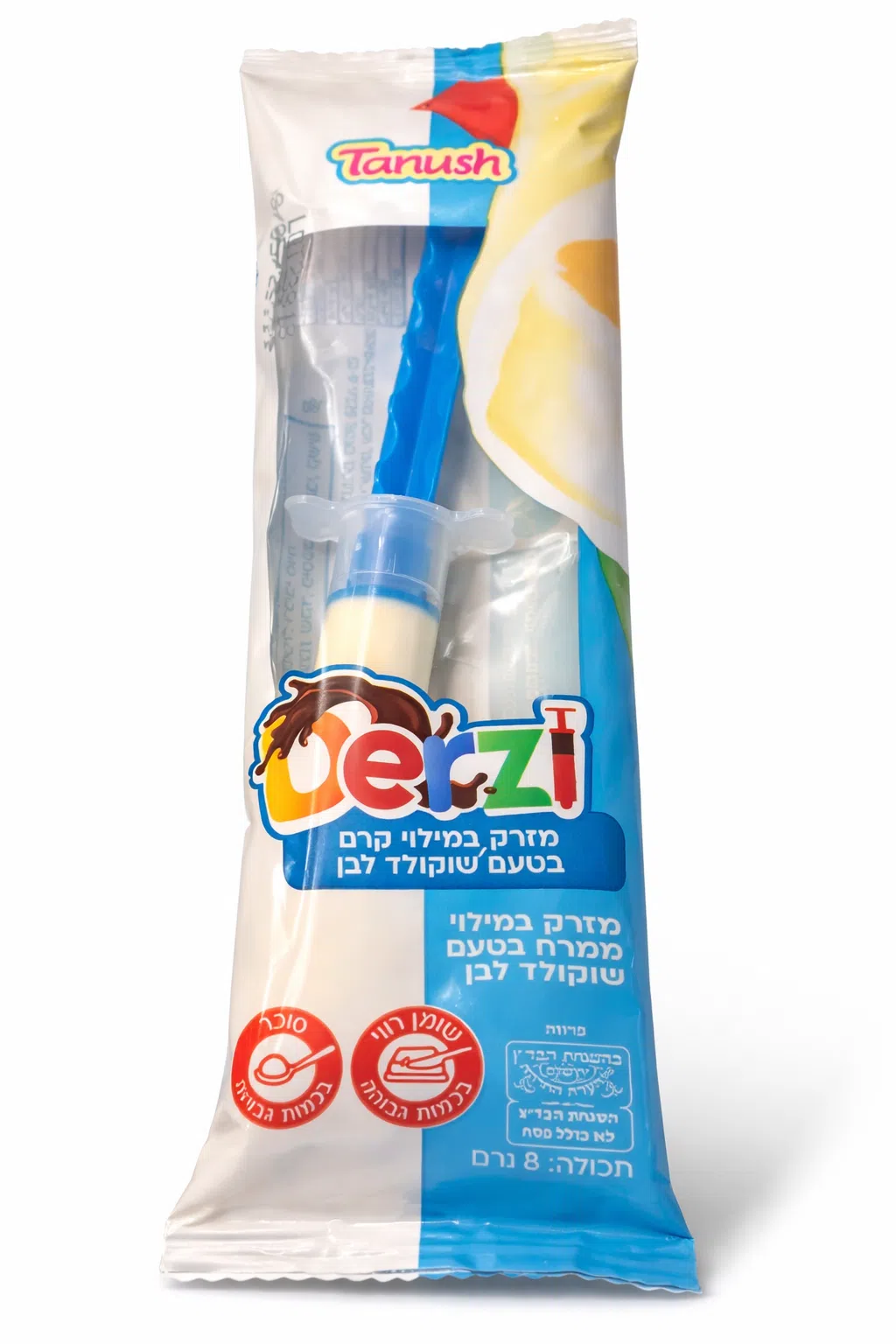 מזרק שוקולד במילוי קרם ושוקולד לבן 8 גרם הוא חטיף מתוק בפורמט ייחודי ומהנה במיוחד. מדובר במוצר קטן ומפתיע שמביא איתו גם טעם עשיר וגם חוויית אכילה שונה מהרגיל. השילוב בין קרם מתוק לשוקולד לבן יוצר מרקם חלק ונעים שמתאים לילדים ולמבוגרים כאחד.