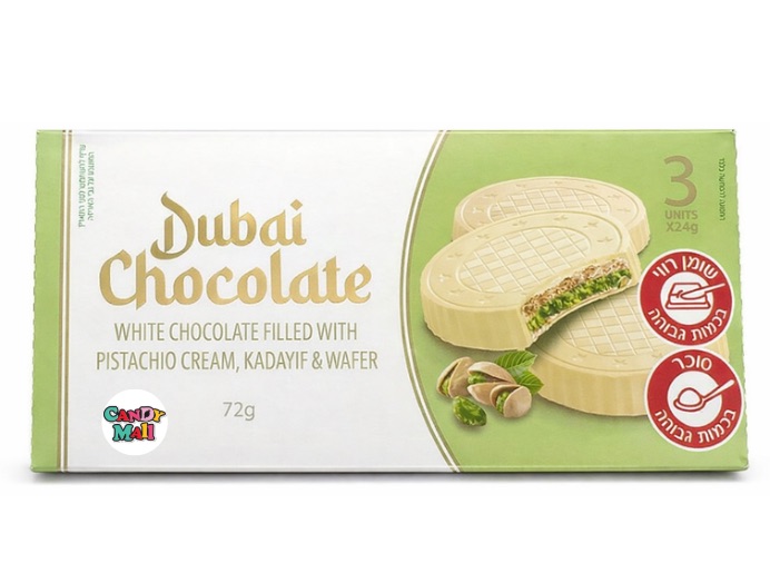 שוקולד לבן בסגנון דובאי יוקרתי במילוי עשיר של קרם פיסטוק איכותי, בשילוב קדאיף פריך ושכבות וופל עדינות. חוויית טעם ייחודית המשלבת מתיקות קרמית עם קראנץ’ מפתיע, בהשראת עולם הקינוחים המזרח־תיכוני. מושלם כפינוק אישי או כתוספת מתוקה למארז מתנה.
