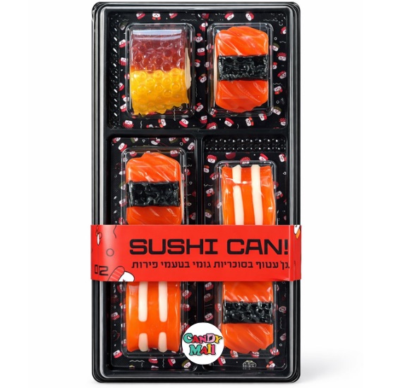 מארז סוכריות גומי צבעוניות ומקוריות בעיצוב סושי יפני, בטעמי פירות שונים. שילוב מושלם בין מראה מפתיע לטעם מתוק ומהנה, עם מרקם רך ונעים ללעיסה. אידיאלי כמתנה מיוחדת, למסיבות, או כפינוק מתוק ושמח לכל גיל.