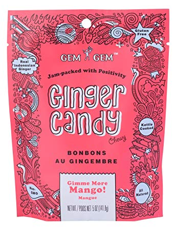 "סוכריות זנגביל לעיסה בטעם מנגו טרופי. השילוב של זנגביל אינדונזי מחמם עם מתיקות המנגו הטרופית יוצר טעם אקזוטי ומרענן. הטקסטורה הלעיסה והטעם העשיר הופכים את הסוכריות לחוויה ייחודית."