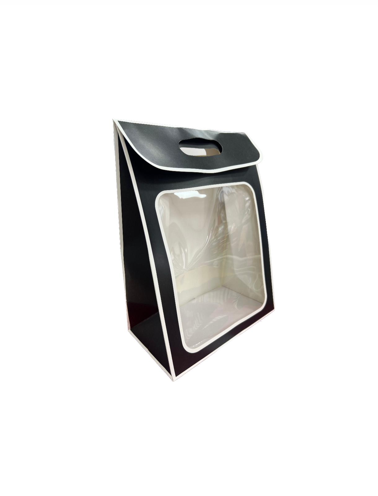 שקית קרטון חצי שקופה למשלוחי מנות - גודל S צבע שחור
