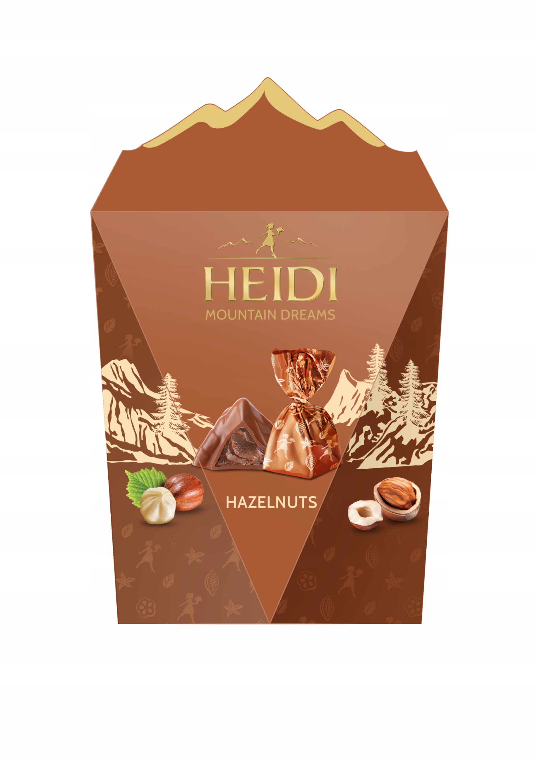 HEIDI Mountain Dreams פרליני שוקולד חלב עם אגוזי לוז הם פרליני שוקולד חלב איכותיים במילוי קרם ואגוזי לוז, המציעים שילוב מושלם של שוקולד עדין וטעם אגוזי עשיר. מדובר בפינוק מתוק שמתאים לכל מי שאוהב שוקולד עם מילוי אגוזים.