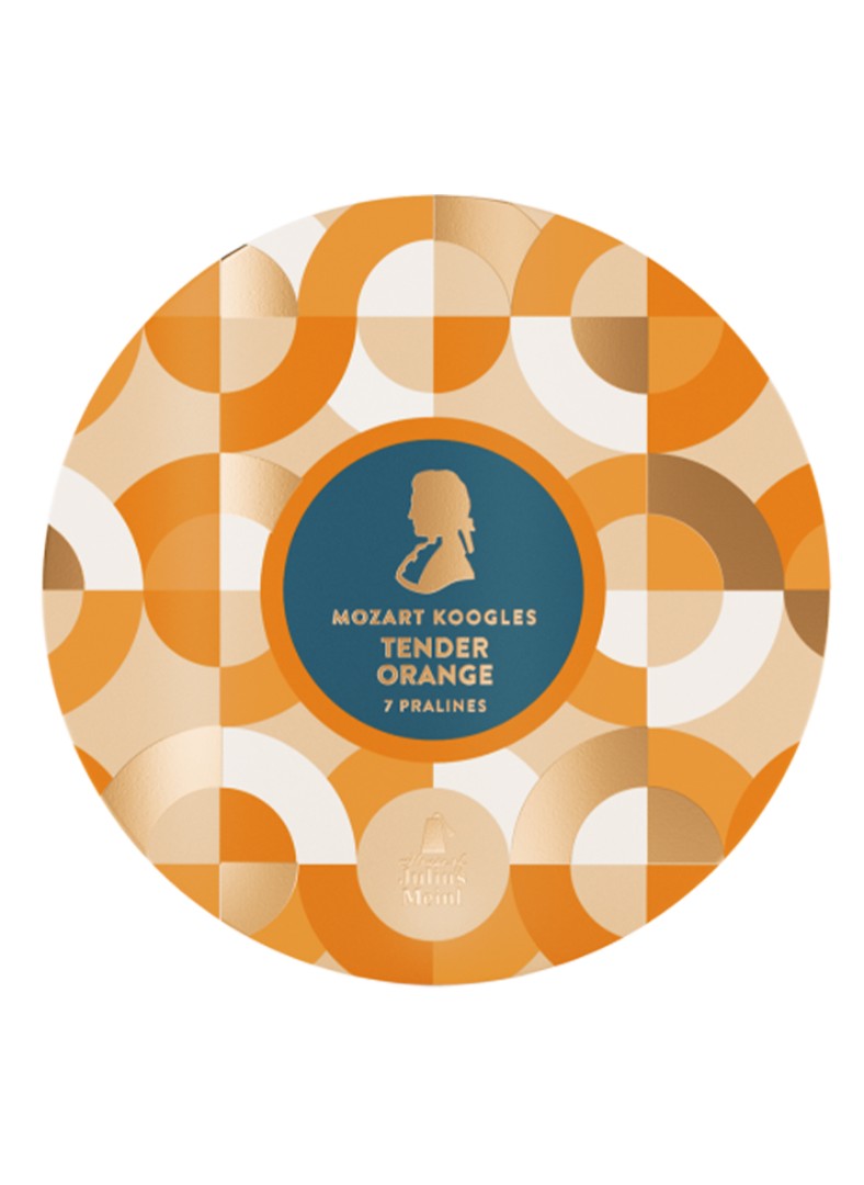 House of Julius Meinl The Tender Orange Mozart Koogles הם פרלינים יוקרתיים מסדרת Mozart Koogles המשלבים שוקולד איכותי עם קרם נוגט עשיר ומרציפן עדין בניחוח תפוז. הפרלינים מצופים בשוקולד חלק ויוצרים שילוב טעמים ייחודי בין מתיקות השוקולד לבין הארומה הפירותית של תפוז.