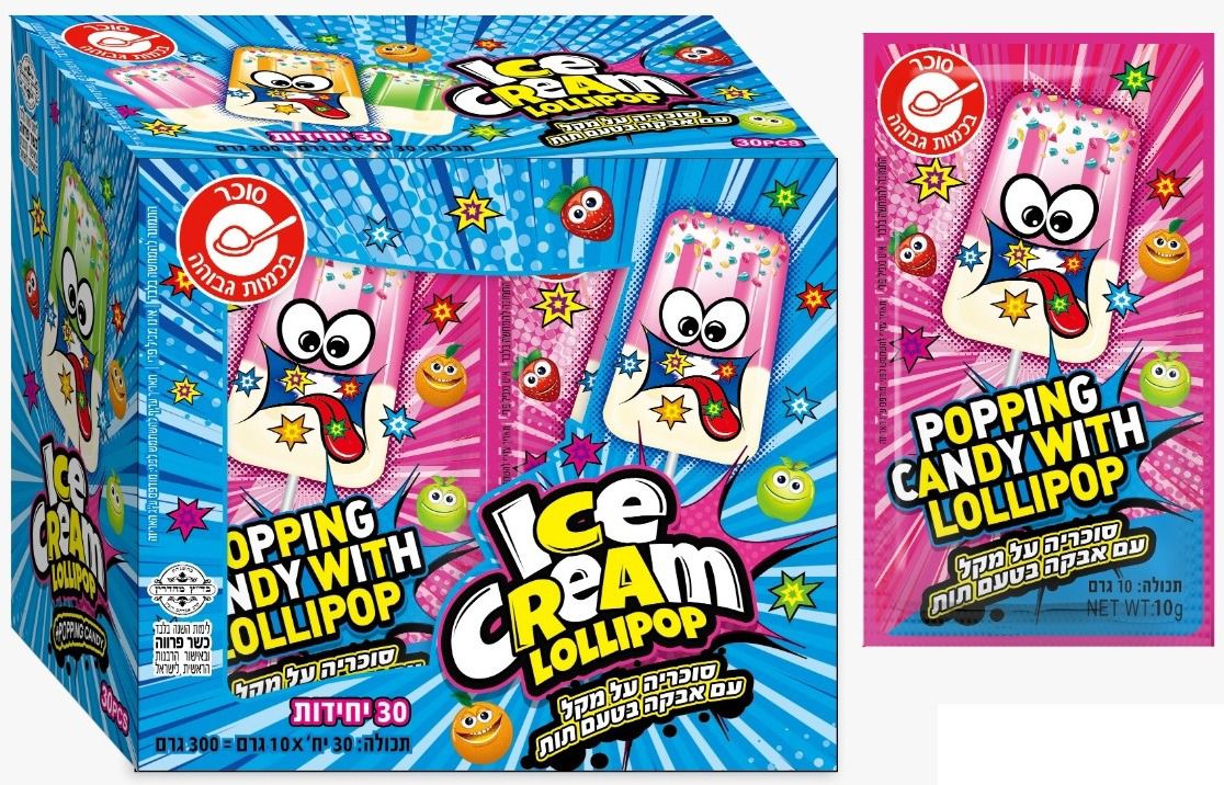 סוכריה על מקל עם אבקה בטעם תות
