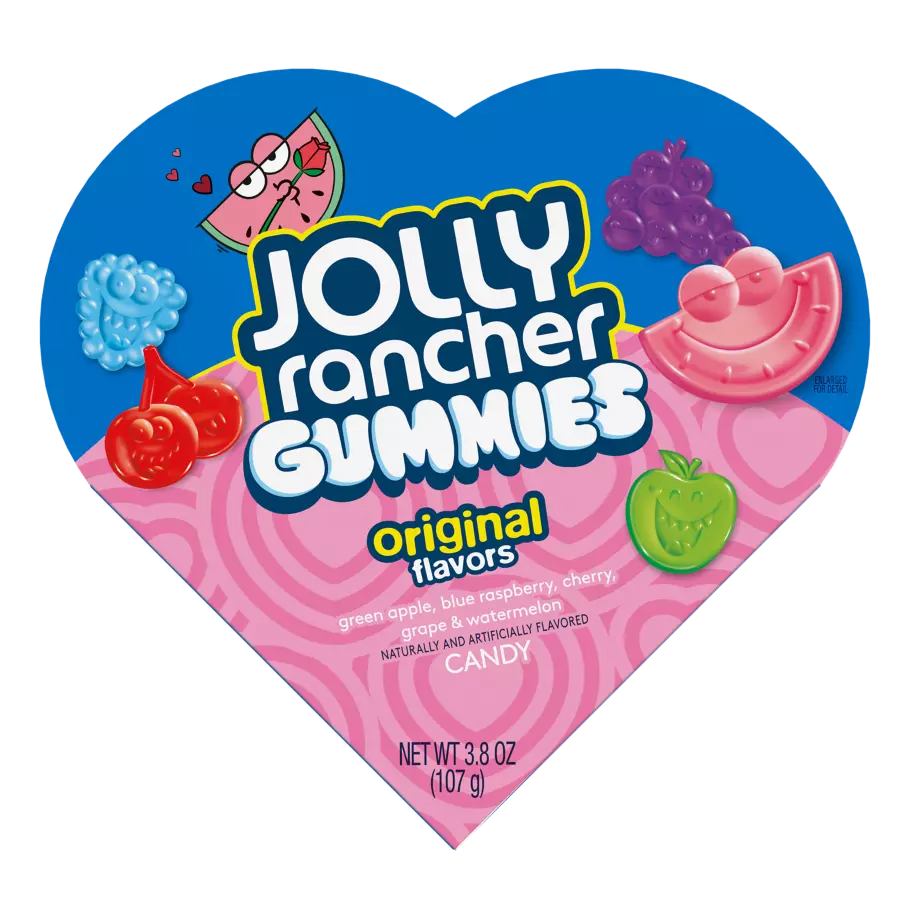 בטעמים המקוריים בקופסת לב מיוחדת! קופסה מעוצבת בצורת לב כחול-ורוד המכילה גומיות רכות וטעימות בחמישה טעמי פירות קלאסיים של Jolly Rancher. כל גומי מכילה את הטעם העשיר והאותנטי שהמותג מפורסם בו, במרקם רך ונעים.