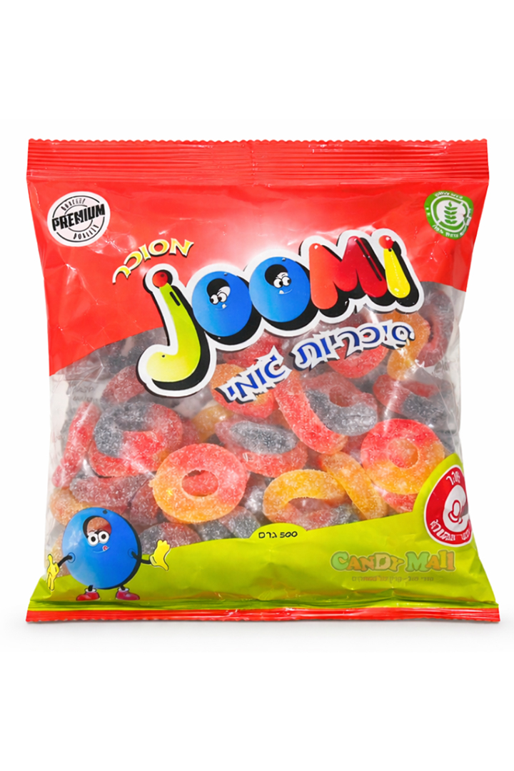 Joomi ג'ומי גומי מסוכר בצורת טבעות 500 גרם מגיע בצורה של טבעות ובמשקל 500 גרם. ברשת הוא מופיע כמוצר גומי מסוכר עם מרקם ייחודי ועשיר, כך שהדגש כאן הוא על צורה מוכרת ואהובה לצד אריזה גדולה יחסית.