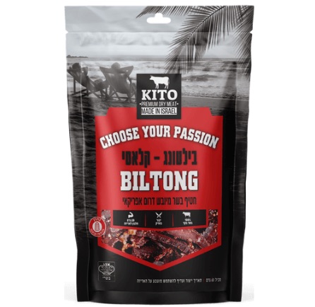 בילטונג איכותי בסגנון דרום אפריקאי, עשוי מבשר מובחר ומתובל בטעמים עמוקים ועשירים. חטיף בשר מיובש עם מרקם רך יחסית וטעם ממכר, מושלם לנשנוש בכל זמן – בבית, בעבודה או בטיול. מתאים במיוחד לאוהבי חלבון ולמי שמחפש נשנוש ייחודי ומשביע.