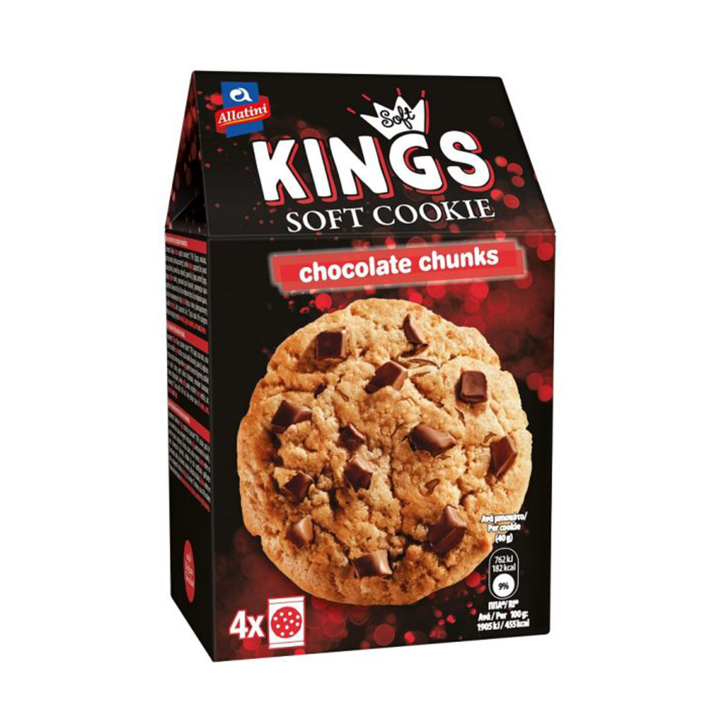 עוגיות קינג הן עוגיות רכות איכותיות עם חתיכות גדולות של שלושה סוגי שוקולד שיוצרות חוויית טעם מורכבת ועשירה. כל עוגייה מכילה מרקם רך ועסיסי עם חתיכות שוקולד נדיבות הפזורות בכל העוגייה.