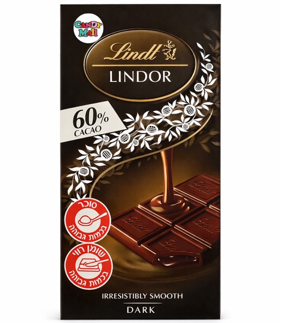שוקולד לינדט לינדור מריר איכותי עם 60% קקאו, המשלב מעטפת שוקולד מריר עשיר ונימוח עם מילוי לינדור קרמי וחלק במיוחד. חוויית שוקולד מאוזנת עם עומק טעמים, מושלמת לאוהבי שוקולד מריר איכותי ולרגעי פינוק יוקרתיים.