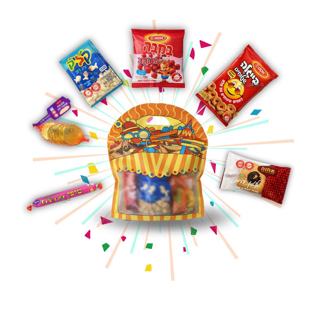 מחפשים משלוח מנות מהדרין צבעוני וכיפי שמביא איתו אווירת חג אמיתית? שקית החלומות של CandyMall מעוצבת בסגנון קרנבלי ושמח – בדיוק כמו שפורים צריך להרגיש 🎭