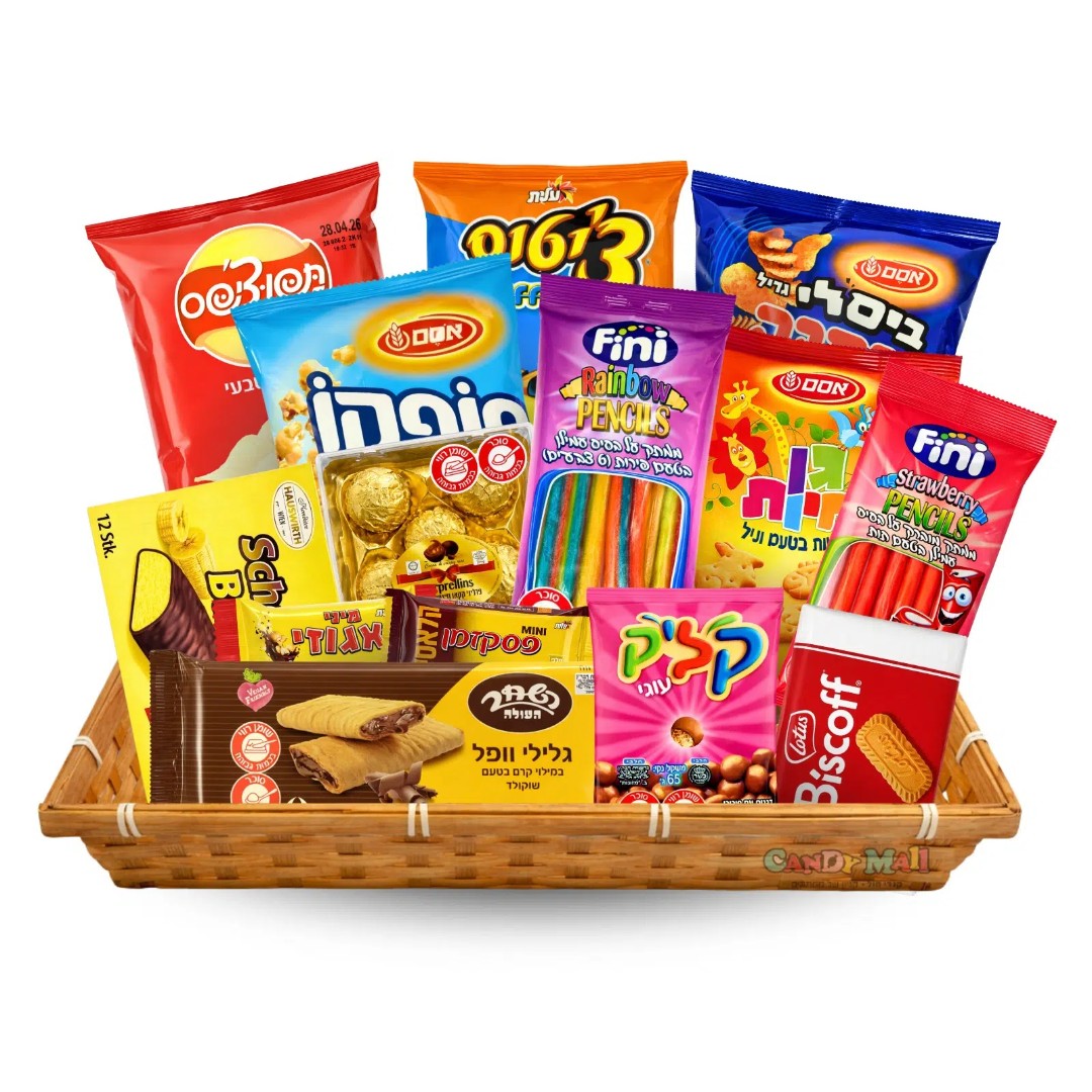 מחפשים משלוח מנות בכשרות מהודרת שמשלב שפע, צבע וטעמים אהובים? ב-CandyMall הכנו עבורכם מארז פורים גדול ומרשים בסלסלת עץ בגודל L – מושלם למשפחה, לחברים ולעובדים.