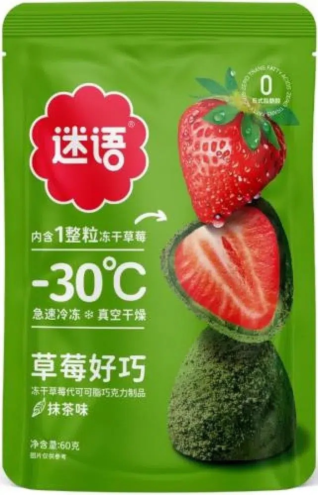 חטיף פרימיום ייחודי של תות שדה שלם מיובש בהקפאה (-30°C) ומצופה בשוקולד מאצ'ה (תה ירוק יפני). כל אריזה מכילה תות שדה שלם אחד שעבר תהליך ייבוש מהיר בהקפאה ושימור בוואקום, המבטיח שמירה על הטעם והמרקם הטבעיים. שילוב מרענן ומיוחד בין פירות בריאים לטעם המאצ'ה העשיר!