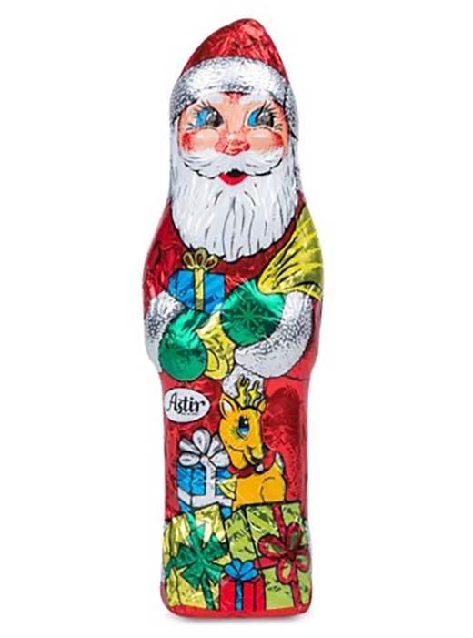דמות סנטה קלאוס חגיגית עטופה בנייר כסף צבעוני, עשויה משוקולד חלב איכותי ומשובח. מוצר מושלם למתנה לחג המולד, לקישוט שולחן החג, או פשוט ליהנות מטעם שוקולד חלב קרמי ומפנק. הדמוי המקסים והצבעוני של סנטה יביא חיוך לפני כל ילד ומבוגר כאחד. אידיאלי לחגיגות, מסיבות, ומתנות בעונת החגים.משקל: 125 גרם.