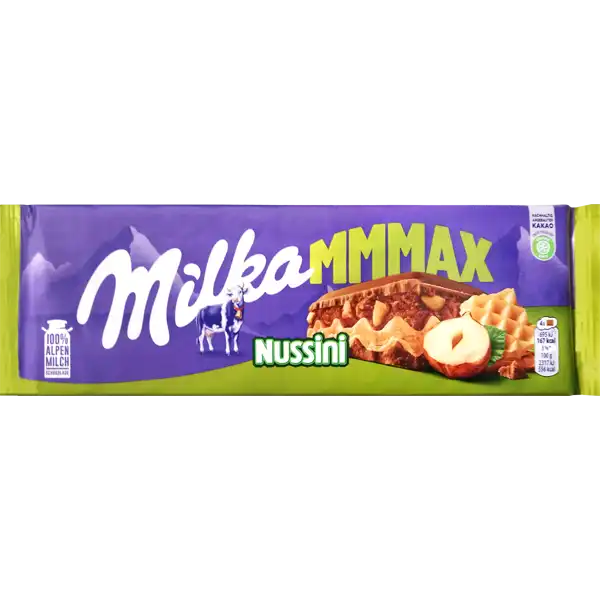 טבלת מילקה - שוקולד חלב נוסיני במילוי וופל וחתיכות אגוזי לוז 270g