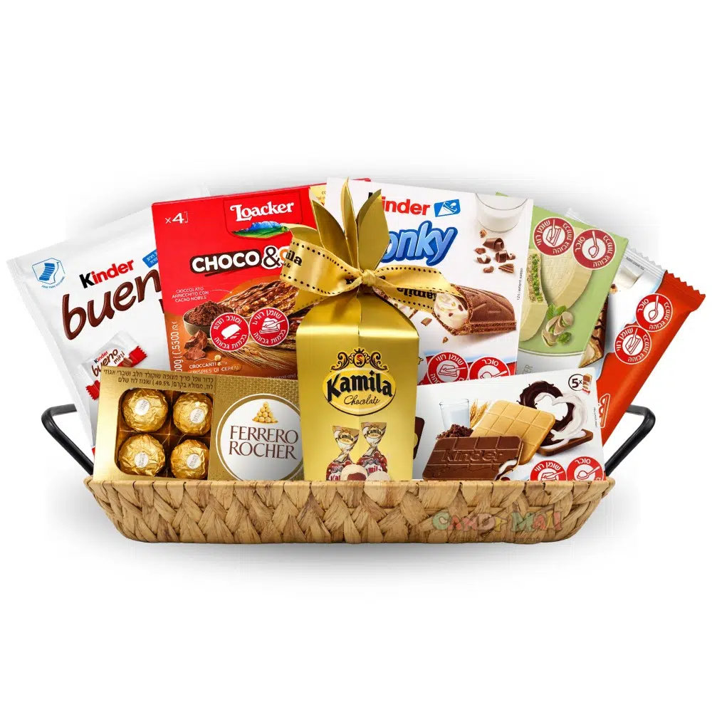 מחפשים מתנה יוקרתית שבאמת תבלוט? הכירו את מארז הזהב של CandyMall – מארז עשיר ומרשים בסלסלת עץ גדולה בגודל L, מלא במותגי פרימיום אהובים.