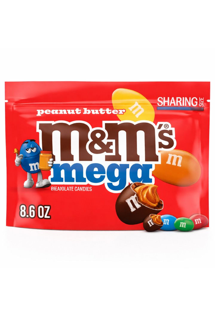 המוצר M&M's חמאת בוטנים בגרסת Mega מציע חוויית נשנוש ייחודית לחובבי שוקולד וחמאת בוטנים. מדובר בעדשי שוקולד גדולות במיוחד המכילות מילוי עשיר של חמאת בוטנים עטוף בשוקולד חלב איכותי ובציפוי הסוכריות הצבעוני המוכר של M&M's.