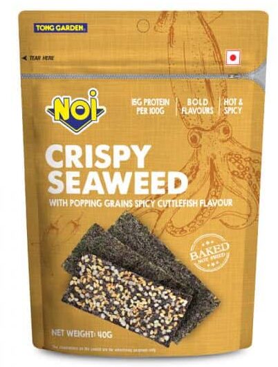 "אצות ים פריכות יפניות בטעם דיונון חריף מבית Noi. חטיף אפוי ולא מטוגן, עשיר בחלבון (15 גרם לכל 100 גרם) ובטעמים עזים. השילוב של אצות ים פריכות עם זרעי תבלינים וטעם דיונון חריף יוצר חוויית טעם אסייתית אותנטית."