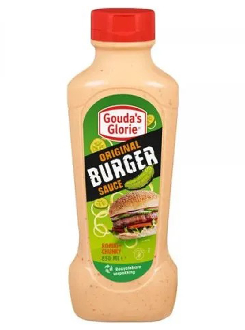 רוטב המבורגר אוריג'ינל מבית גאודא'ס גלורי ההולנדית! רוטב עשיר במרקם חאנקי (עם חתיכות) שמשלב בצל פריך, מלפפון חמוץ וירקות קצוצים. טעם מתוק-חמצמץ ועשיר שמעניק לכל המבורגר, סנדוויץ' או ארוחה מהירה טעם מושלם. הרוטב ההולנדי המקורי והאהוב. נפח: 850 מ"ל.