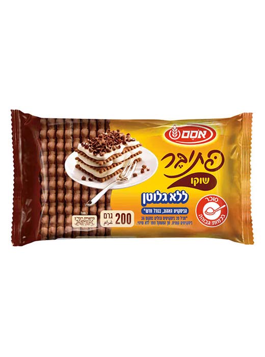 פתיבר בטעם שוקו הביסקוויט האהוב ללא גלוטן מתאים לנשנוש בכל שעה.200 גרם מכיל 20 ביסקוויטים גדולים במקום 36.