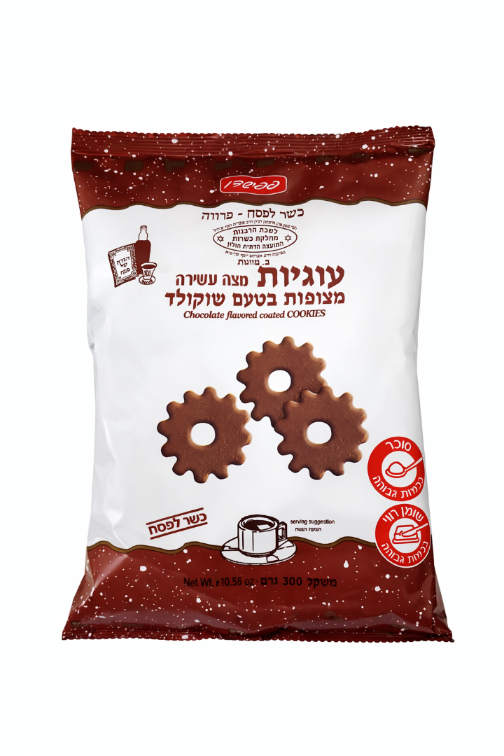 עוגיות פפושדו מצופות בטעם שוקולד מבית אסם, במרקם פריך ונעים עם ציפוי בטעם שוקולדי עשיר.העוגיות מותאמות במיוחד לפסח, ללא קטניות, ומהוות פתרון מושלם לנשנוש מתוק לצד קפה או תה.