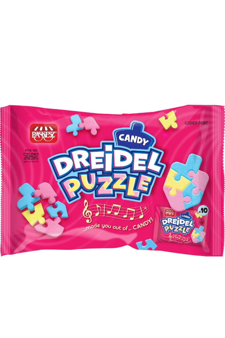 שקית משפחתית של סוכריות פאזל סביבון של פשקס, מיוחדת לחג החנוכה. השקית מכילה 10 יחידות של סוכריות בצורת חלקי פאזל צבעוניים - ורוד, תכלת, וצהוב. המוצר משלב סוכריה טעימה עם משחק מהנה - הילדים יכולים להרכיב את חלקי הפאזל ולשחק. עיצוב כיפי וחגיגי עם נושא מוזיקלי. מושלם למתנות לחנוכה, למסיבות, לחלוקה לילדים, או פשוט ליהנות מסוכריות אינטראקטיביות ומשעשעות. כשר פרווה.משקל: 110 גרם (10 יחידות של 11 גרם).