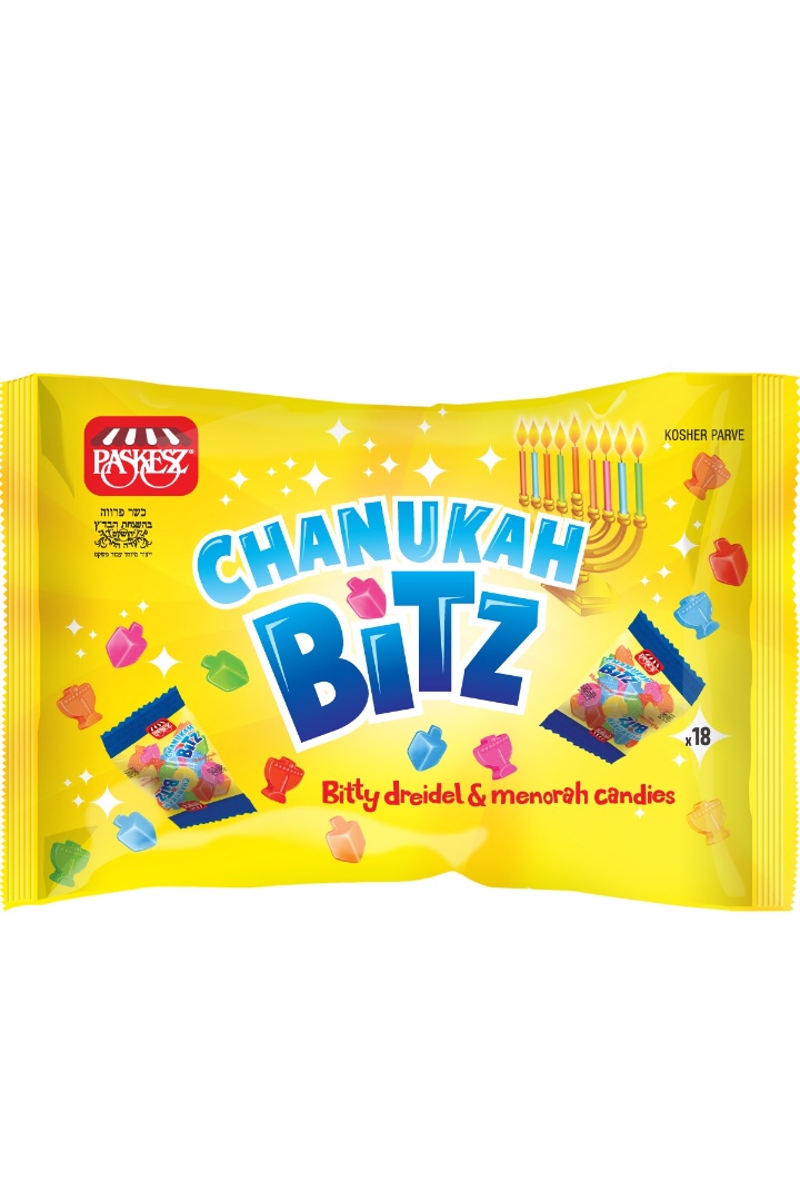 שקית משפחתית גדולה של סוכריות ביטס חנוכה של פשקס, מיוחדת לחג החנוכה. השקית מכילה 18 יחידות של סוכריות קטנות וצבעוניות בצורות חנוכה - סביבונים וחנוכיות, בטעמים שונים ומגוונים. הסוכריות עשויות מסוכר דחוס בצבעים עליזים, מושלמות לחלוקה לילדים בחנוכה, למסיבות, למתנות, או פשוט ליהנות מסוכריות מסורתיות וכיפיות. עיצוב חגיגי מיוחד לחנוכה.משקל: 216 גרם (18 יחידות של 12 גרם). גודל אריזה: 24 שקיות בארגז.אלרגנים: סוכר, דקסטרוז, חומצה (חומצת לימון, חומצת תפוחים), חומרי טעם וריח, צבעי מאכל. עלול להכיל עקבות של חלב וגלוטן.