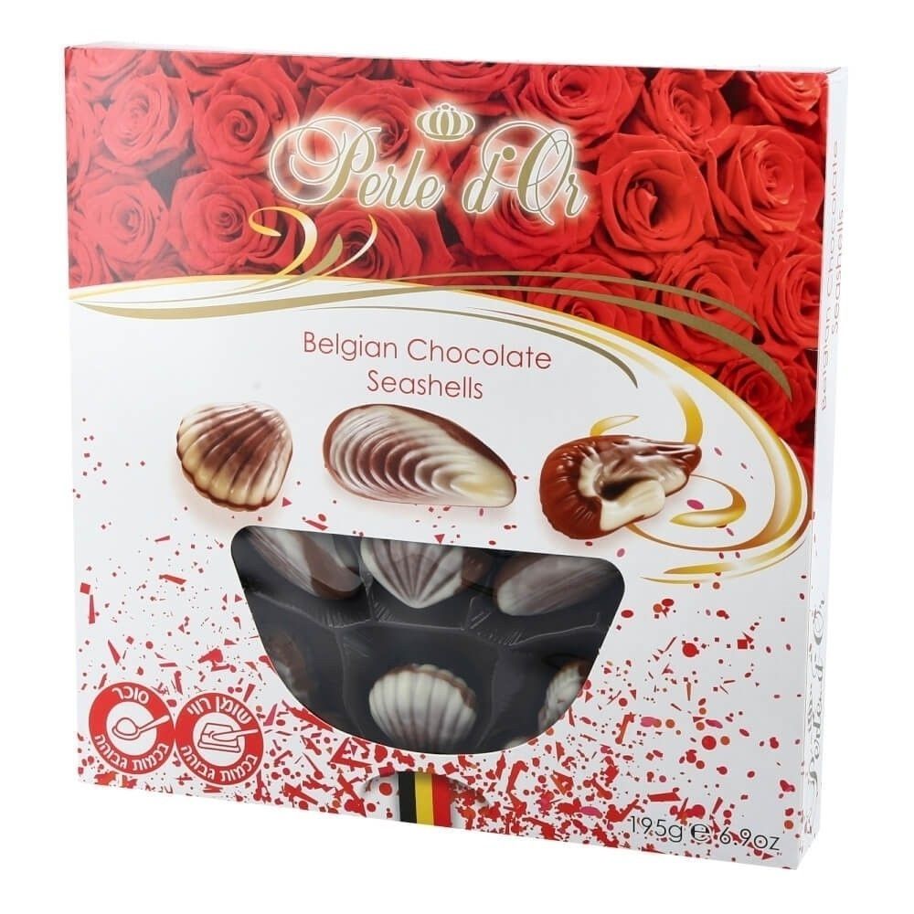 Perle d'Or Belgian Chocolate Seashells הם שוקולד בלגי קלאסי בצורת צדפים, עשויים Belgian Chocolate איכותי ובמילוי קרם פרלין בלגי עדין. זהו מוצר שוקולד מסורתי, המשלב מראה אלגנטי עם טעם מוכר ואהוב.
