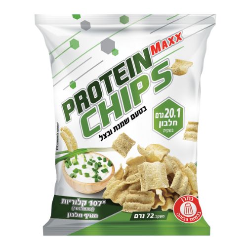 חטיף חלבון פרימיום המכיל 20.1 גרם חלבון למנה, בטעם השילוב הקלאסי והאהוב של שמנת חמוצה ובצל, המיועד לספורטאים ולמי שמחפש תזונה מאוזנת.
