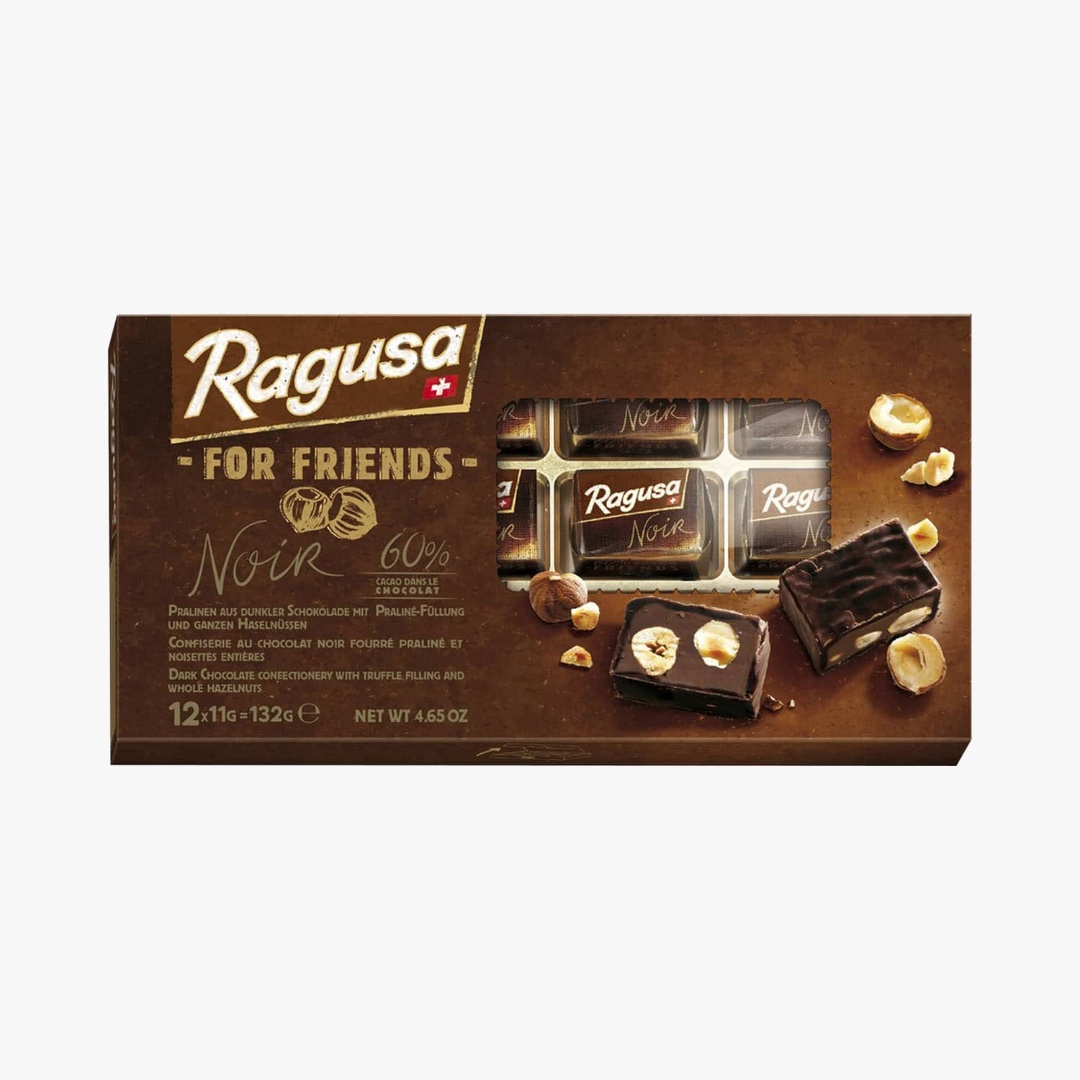 פרליני שוקולד מריר איכותיים מבית Ragusa, במילוי פרלינה עשיר ואגוזי לוז שלמים. שילוב מושלם של שוקולד מריר עם מרקם קרמי ונגיעות אגוזיות קראנצ'יות. מתאים לאירוח, פינוק אישי או כמתנה יוקרתית.