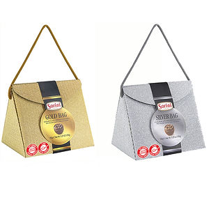 בונבונירה Sorini Silver Bag - קופסת שוקולדים איטלקית יוקרתية בעיצוב תיק כסוף אלגנטי! מכילה מבחר שוקולדים איטלקיים מובחרים מבית Sorini, חברת השוקולד האיטלקית המפורסמת. העיצוב הייחודי בצורת תיק כסוף הופך אותה למתנה מושלמת לאירועים מיוחדים כמו חתונות, בר/בת מצווה או חגים. כל שוקולד מוכן בקפידה איטלקית מסורתית עם מרכיבים איכותיים. הבונבונירה משמשת גם כזכרון יפה לאחר סיום השוקולדים.בצבעי זהב \ כסףאם הצבע משנה לכם, רשמו לנו בהערות