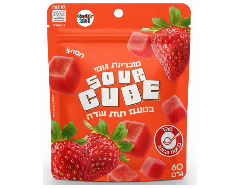 סוכריות גומי בצורת קוביות בטעם תות חמוץ. סוכריות רכות ולעיסות עם ציפוי חמצמץ וטעם תות פירותי ומודגש, המעניקות חוויית מתיקות–חמיצות מאוזנת ומהנה. מגיעות באריזה נוחה לסגירה חוזרת, מתאימות לנשנוש, לשיתוף או כפינוק מתוק בכל זמן. משקל האריזה: 60 גרם.