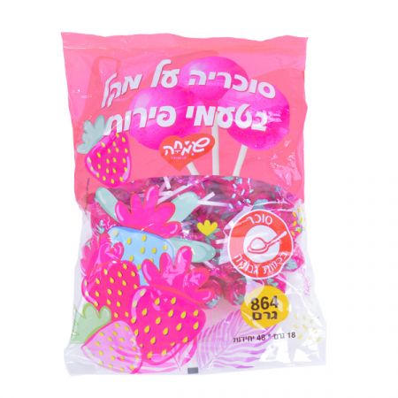 סוכריה על מקל - בטעמי פירות תות 48 יחידות - 18 גרם ליחי'