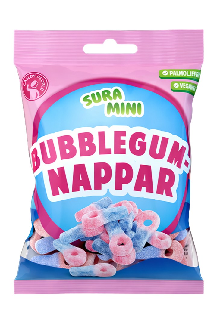 Sura Mini מיני מפתחות גומי שוודיים בטעם באבלגם מושלמים לנשנוש במהלך היום, לשיתוף עם חברים או להוספה למארזי ממתקים. הצבעים הבוהקים והטעם המתוק-חמוץ הופכים את הסוכריות לפופולריות במיוחד.