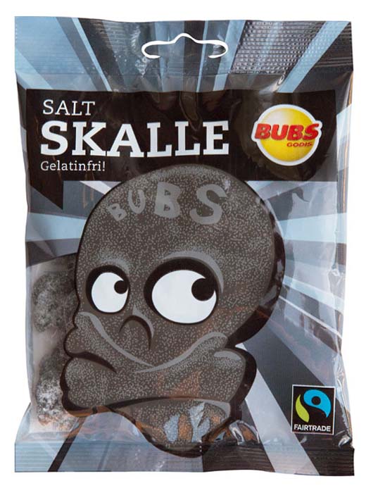 הכירו את באבס סלט סקאלה - סוכריות גומי שוודיות בצורת גולגלת עם טעם סלמיאק מלוח!באבס סלט סקאלה הן סוכריות גומי שוודיות ייחודיות בצורת גולגלת (Skalle) עם טעם סלמיאק מלוח (Salmiak) - הטעם הנורדי הקלאסי. הסוכריות בצבע שחור-אפור עם עיניים לבנות יוצרות מראה מיוחד וחמוד. טעם הסלמיאק המלוח הוא טעם מוכר במיוחד בסקנדינביה ובמדינות הבלטיות. כל אחת במשקל 90 גרם, מושלם למכירה קמעונית או לאירועים.