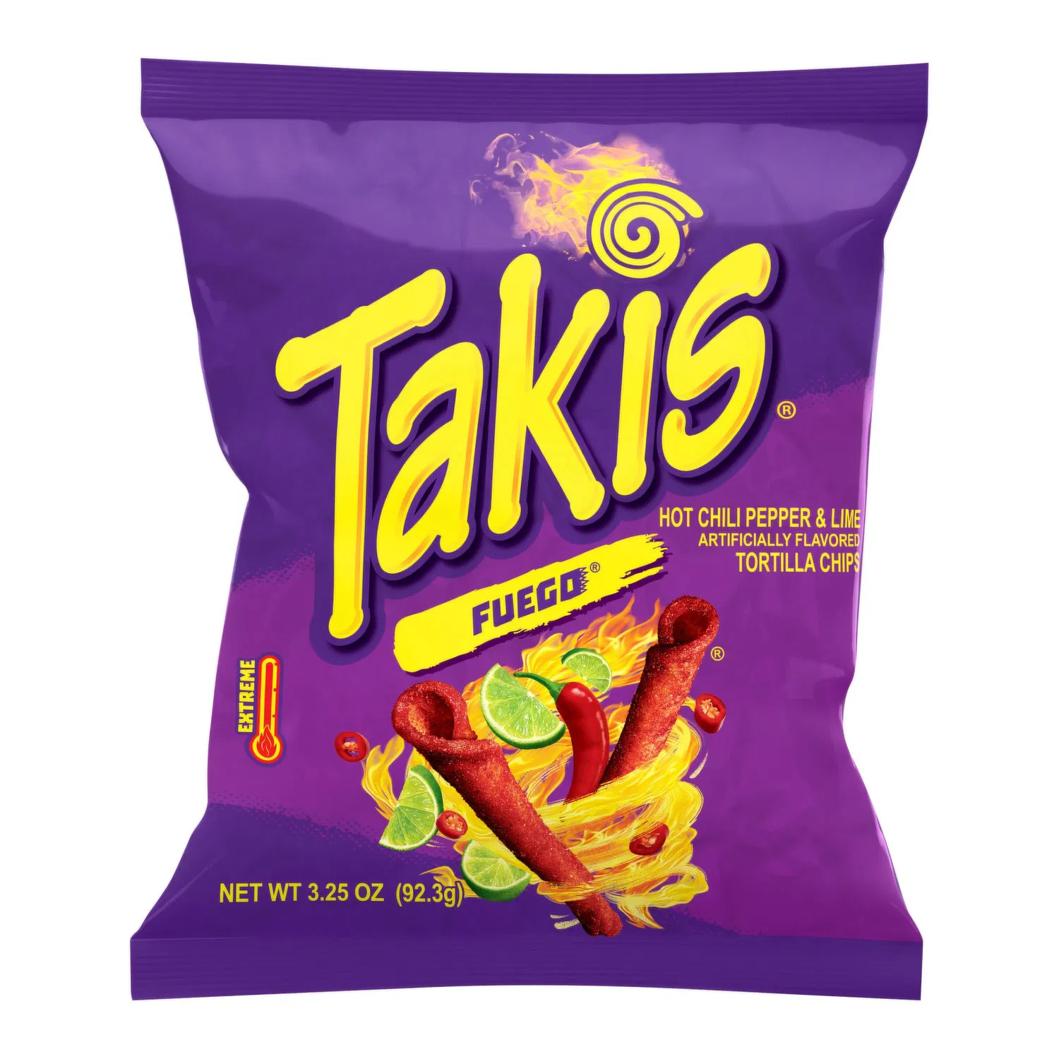 טקיס פואגו - המוצר הקלאסי והמקורי שהתחיל את מהפכת הטעמים החריפים. חטיפי טורטיה מגולגלים עם השילוב המושלם של חריפות אש ורעננות הליים הטרי. זה המוצר שהקים את המותג כמלך החטיפים החריפים בעולם, ועדיין נחשב למוצר הדגל של הסדרה.