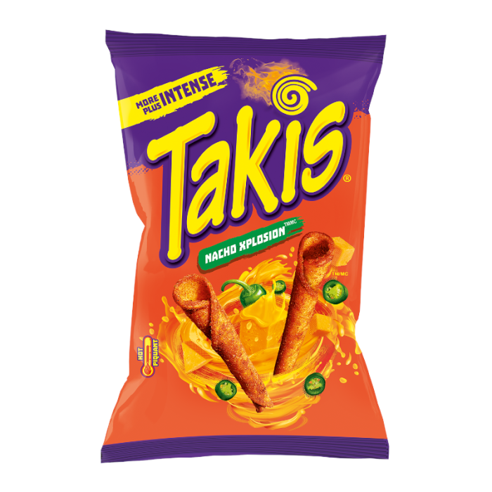 חטיף תירס מגולגל חריף בטעם נאצ'ו גבינה עם פלפלים, המספק חוויית טעם אינטנסיבית וחריפות ברמה גבוהה.