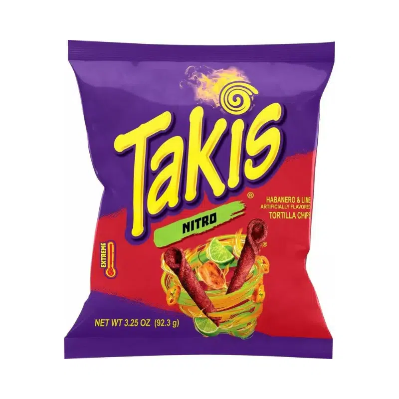 חטיפי טורטיה מהפכניים ואקסטרימיים מסדרת טקיס ניטרו, בטעם הבנרו וליים בעוצמה מקסימלית. חטיף מקסיקני אותנטי בעל צורה לולינית ייחודית ומרקם פריך, המעוצב במיוחד לחוויית טעם אינטנסיבית ובלתי נשכחת. הצמוד המושלם לאוהבי החריפות והטעמים האקסטרימיים.