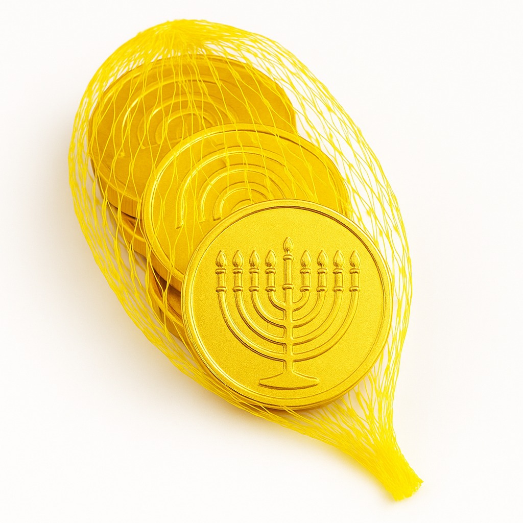 רשת זהובה מיוחדת לחנוכה של תנתה, מלאה במטבעות שוקולד עטופות בנייר כסף זהוב מבריק. כל מטבע מוטבעת בתבליט של חנוכייה חגיגית. הרשת עשויה מפלסטיק צהוב-זהוב בעיצוב מסורתי ואלגנטי. מוצר מושלם לחלוקה במשחק הסביבון, למתנות לילדים בחנוכה, למשלוחי מנות, או לקישוט שולחן החג. השילוב של האריזה המקורית והמטבעות הטעימות יוצר מתנה מושלמת וחגיגית. מסורת אהובה של חג החנוכה.
