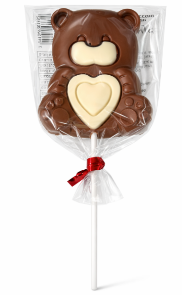 לקקן שוקולד מתוק בצורת דובי חמוד עם לב, עשוי שוקולד חלב ושוקולד לבן. מתאים במיוחד ליום האהבה, כמתנה קטנה ומרגשת, הפתעה רומנטית או פינוק מתוק לילדים ולמבוגרים. מגיע עטוף בנפרד על מקל – נוח להגשה ולאכילה.