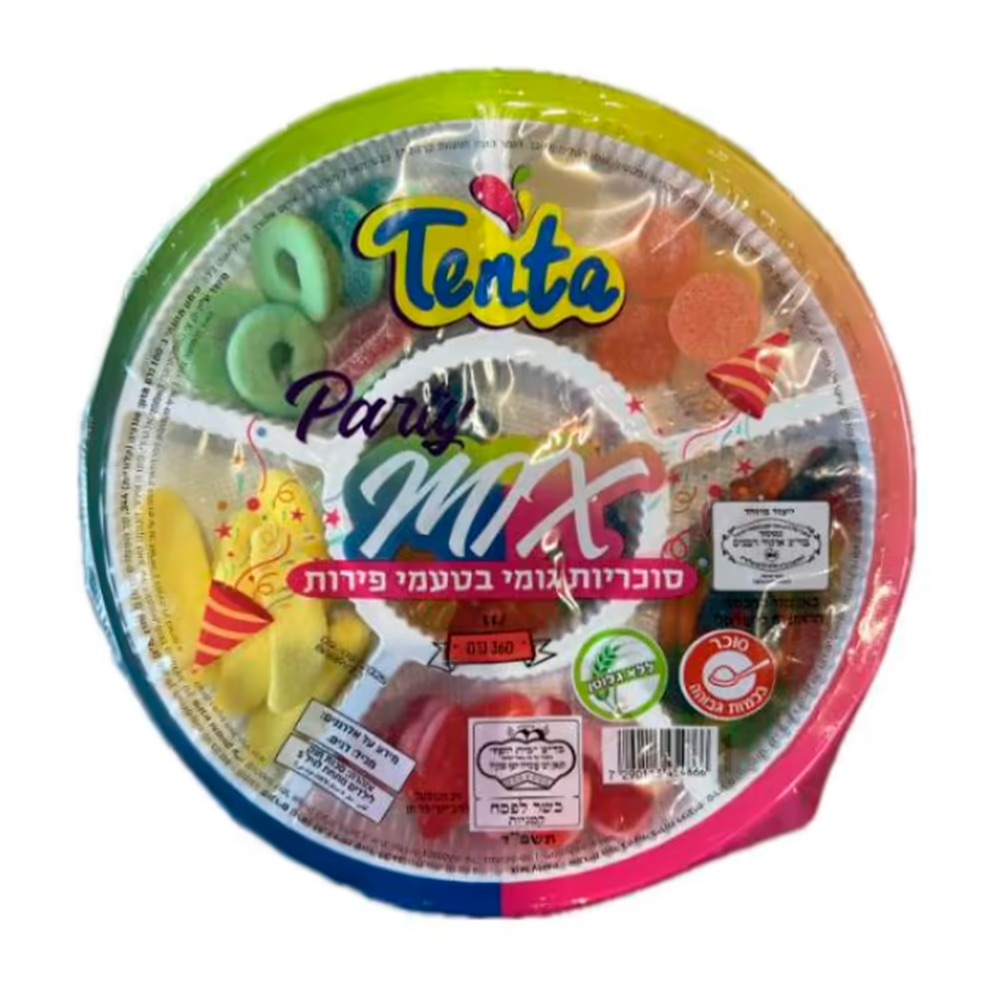 תנתה פארטי מיקס - אוסף מגוון ומפתה של סוכריות גומי רכות בצורות וטעמים שונים. המגש הצבעוני כולל סוכריות בטעמי פירות טבעיים: תפוח ירוק, תות, תפוז, לימון ועוד. כל סוכריה מעניקה פרץ של טעם פירותי ונותנת חוויית לעיסה נעימה. המוצר ללא גלוטן ומתאים גם לאנשים עם רגישות. האריזה המיוחדת הופכת אותו למושלם לאירוח, מסיבות ילדים או כמתנה מתוקה.