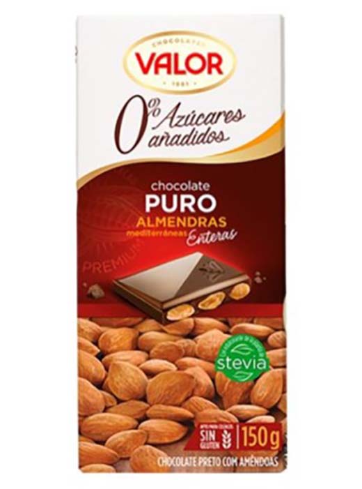Valor ואלור - טבלת שוקולד מריר עם שקדים שלמים ללא תוספת סוכר 150G