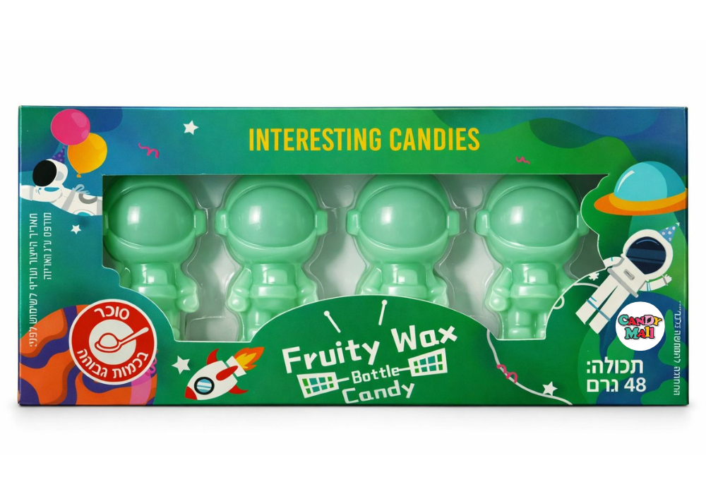 ממתק שעווה מיוחד ומהנה בצורת אסטרונאוט, ממולא בג’ל מתוק וטעים. חוויית אכילה מקורית שמשלבת משחק ודמיון, מושלמת לילדים, לימי הולדת, מתנות קטנות או כפינוק צבעוני ושונה מהרגיל. 🚀🍬