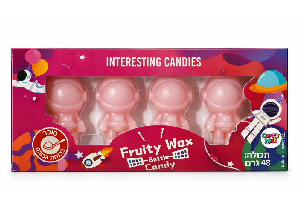 ממתק שעווה מיוחד ומהנה בצורת אסטרונאוט, ממולא בג’ל מתוק וטעים. חוויית אכילה מקורית שמשלבת משחק ודמיון, מושלמת לילדים, לימי הולדת, מתנות קטנות או כפינוק צבעוני ושונה מהרגיל. 🚀🍬