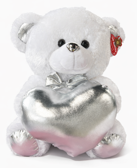 דובי לבן גדול ורך במיוחד, מחזיק לב כסוף ומבריק שמוסיף מגע יוקרתי ורומנטי. מתנה מושלמת ליום האהבה, יום הולדת, יום נישואין או כהפתעה מרגשת לאדם אהוב. שילוב של חיבוק חמים, עיצוב אלגנטי והמון אהבה – דובי שאי אפשר להישאר אדישים אליו.