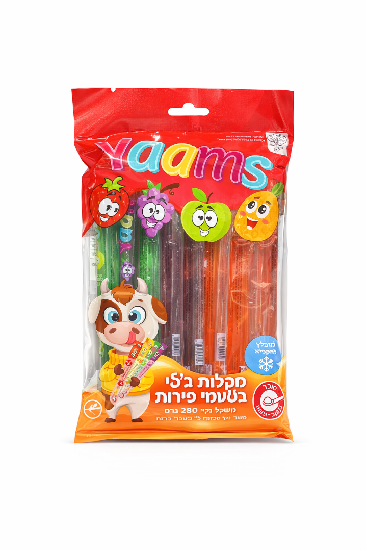מארז גדול וצבעוני של חטיפי ג’לי מבית Yaams, הכולל 15 יחידות בטעמים פירותיים שונים. כל חטיף מגיע באריזה אישית נוחה, מה שהופך את המוצר לאידיאלי לנשנוש, לשיתוף, לימי הולדת, מארזים ומתנות. טעם מתוק וכיפי שכל הילדים אוהבים – וגם המבוגרים